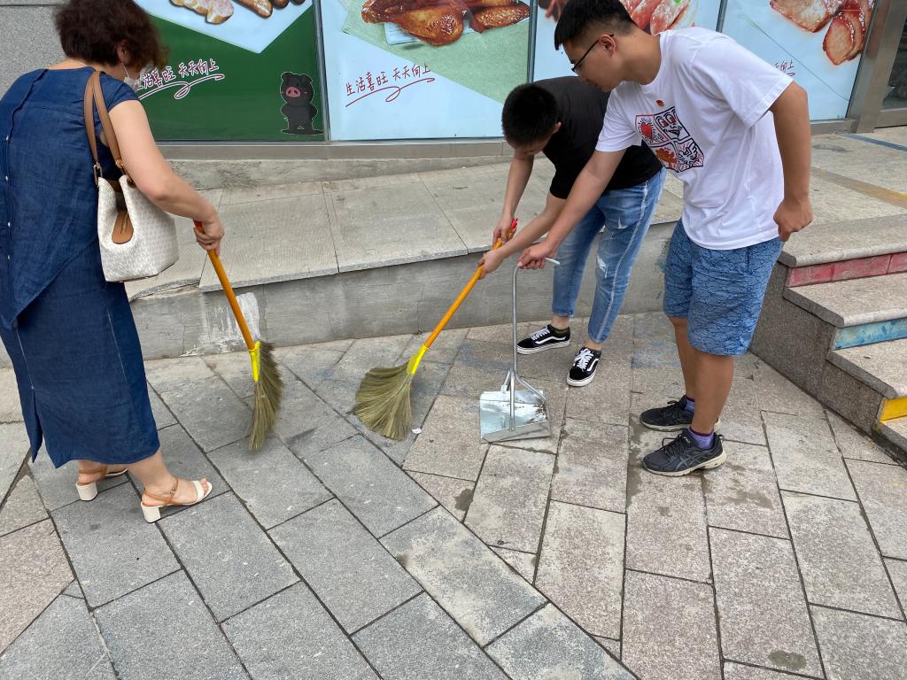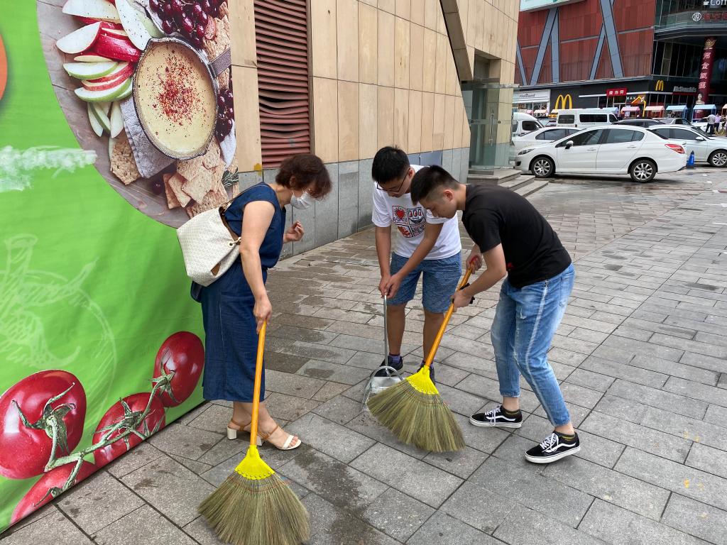 组织员勇玲娥带领学生党员赴新世界百货-保利广场扎实开展卫生专项整治“双报到”志愿服务活动。