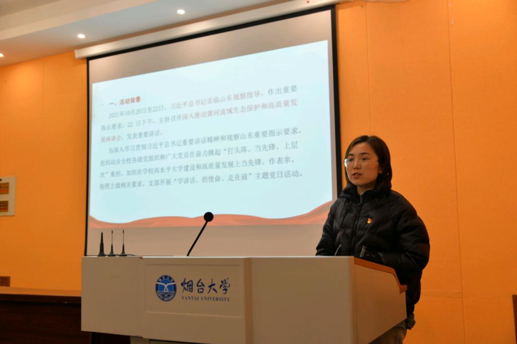 本次党日活动紧紧围绕“努力在服务和融入新发展格局上走在前,在增强经济社会发展创新力上走在前,在推动黄河流域生态保护和高质量发展上走在前”等重点展开深入探讨,并坚持学思践悟、知行合一等观念结合实际交流发言。各党支部成员一同观看了习近平总书记召开的有关深入推动黄河流域生态保护和高质量发展的座谈会等视频。党员结合学习习近平总书记重要讲话精神、重要指示要求,深入思考,切实把自己摆进去、把职责摆进去、把工作摆进去,采取重点发言、点题发言、即时研讨等方式,谈感悟体会和打算,切实增强了广大党员的思想自觉和行动自觉,进一步激发干事创业和学习成才的热情。学生党员王振说到:“我们党员应严格要求自己,从身边的一切小事做起,用自己的力量为推动黄河流域生态保护和高质量发展做一份贡献。”各党员纷纷表示赞同,积极发表自己的看法。至此,本次党日活动圆满结束。