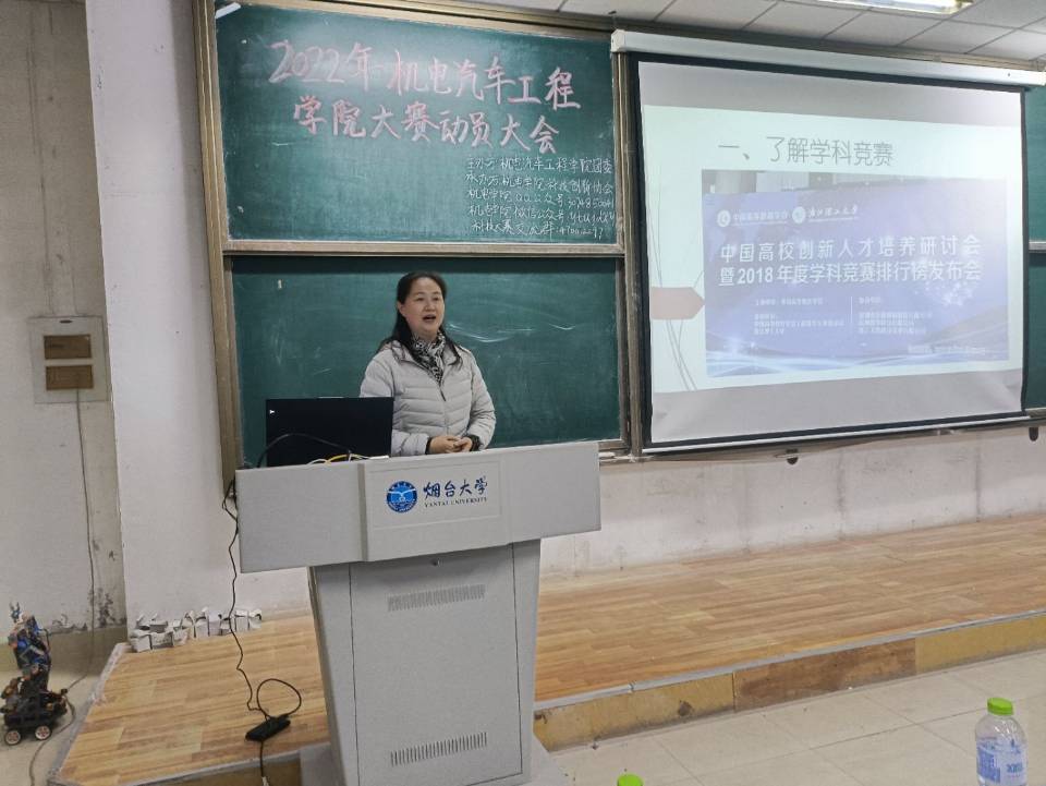 会议开始之前,工作人员播放了一段近年参赛作品的展示视频,充分调动了现场的气氛。会议伊始,指导老师应华针对全国三维数字化创新设计大赛,为同学们展开详细讲解,她鼓励同学们在认真学习专业知识的同时,积极参加科技类比赛,锻炼自身思维。随后,指导老师王林平从大赛简介、大赛流程、参赛方式以及比赛理念四个方面为同学们讲解了“西门子杯”中国智能制造挑战赛的相关内容,为准备参赛的同学指明方向,王林平老师幽默风趣的语言不时引得全场得阵阵掌声。接着,历年优秀参赛队员代表张楚霄、袁颂歌、刘嗣睿依次上台为大家分享比赛经验和参赛过程中的趣事,同时还热情地与同学们展开互动,认真地解答同学们提出的问题,将现场的气氛推向了高潮。至此,本次大赛动员大会圆满结束。