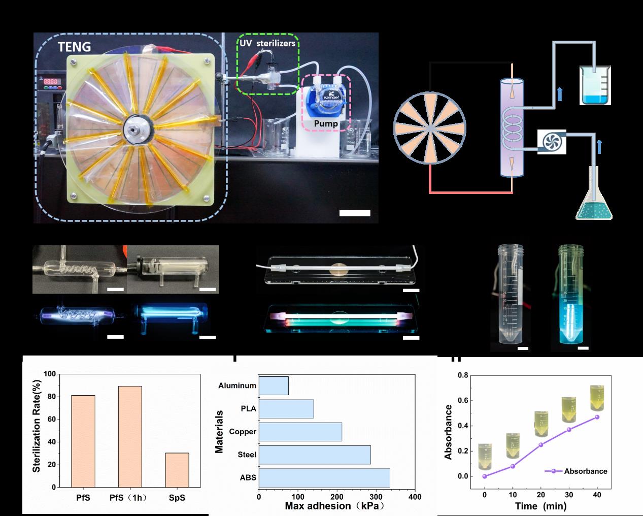 针对紫外线在野外、贫电地区应用时遇到的电能供给问题,以及公共场合对于安全、方便、节能的紫外线杀菌技术的迫切需求。作为紫外线技术应用的极大补充,本论文创新性地提出一种环境机械刺激驱动的分布式移动紫外光源(Mobile-UV),其核心是利用摩擦纳米发电机驱动紫外线发生器直接产生摩擦电紫外线,驱动 TENG 的机械能则可以利用人的生物能、自然界中的风能、水能等低频能量转化。该项技术具有结构简单,安全经济,节能环保,适用场景广泛等优势。