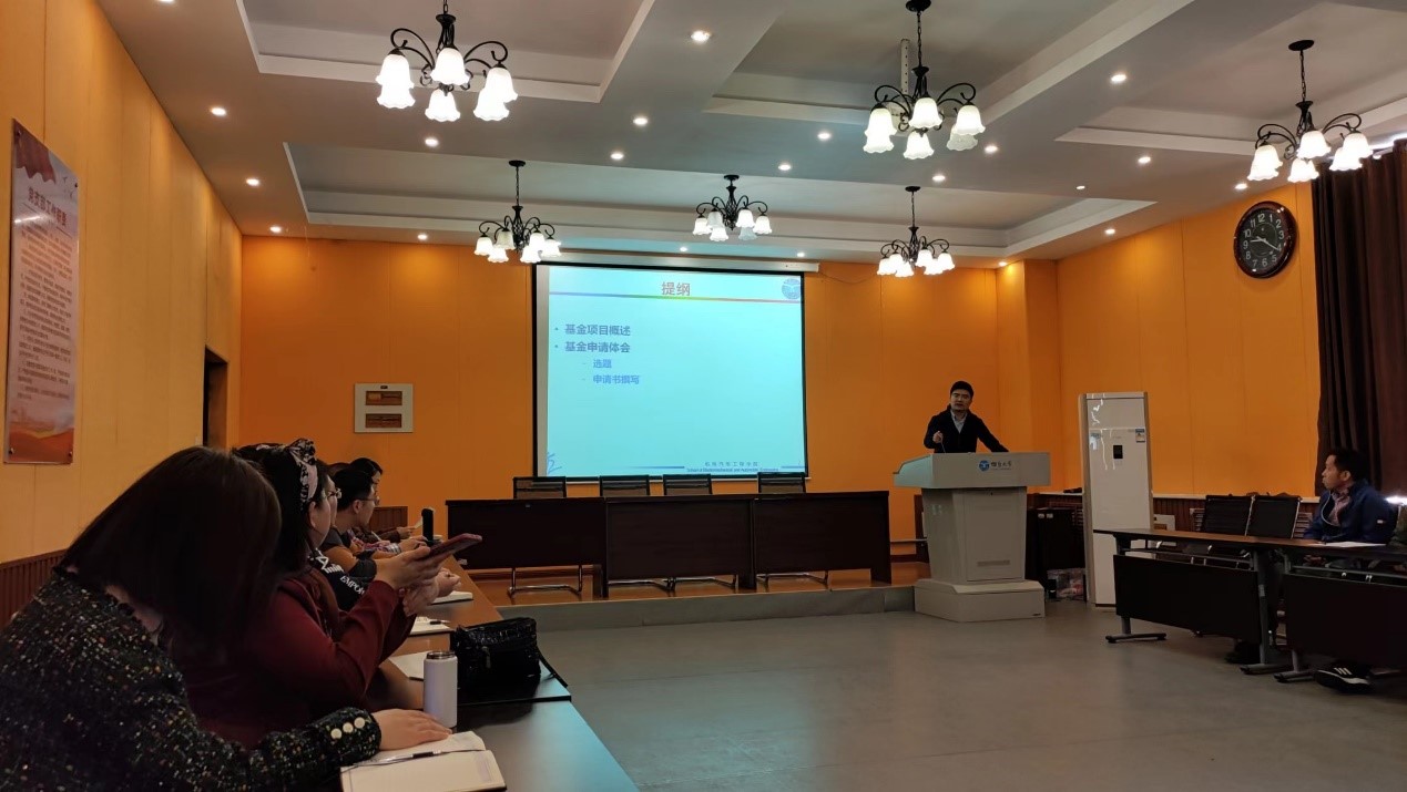 首先,于涛对学院2022年度国家和省自然科学基金立项情况作了总结分析,他指出,新进博士是学院基金申报的主力军,自然科学基金,尤其是国家青年科学基金是年轻老师幸福生活的保障,学院将从各方面助力年轻老师开展有组织的科研。通过勤于思考;勇于尝试、敢于取舍;坚定方向,持之以恒等几方面分析,让年轻老师深深的感受到学院对于自然科学基金的重视。最后,对2023年自然科学基金高质量申报进行了安排部署。学院多措并举,鼓励青年老师开展有组织科研,包括设立揭榜制开放基金、鼓励参加学术会议、鼓励年轻教师做学术报告等。